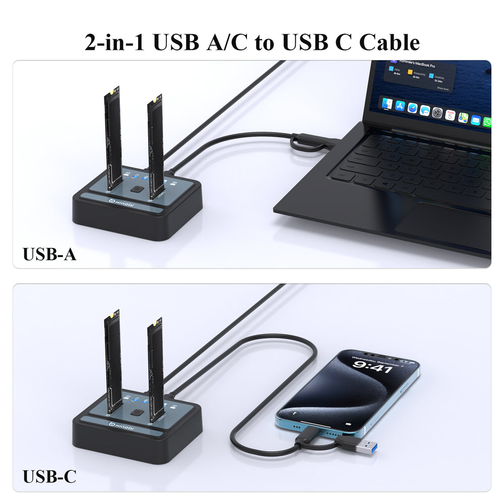 Equipped with a USB 3.2 Gen 2x2 interface, this NVMe duplicator offers blazing speeds up to 20Gbps, making this SSD dock an ideal SSD to USB adapter for those needing speed.